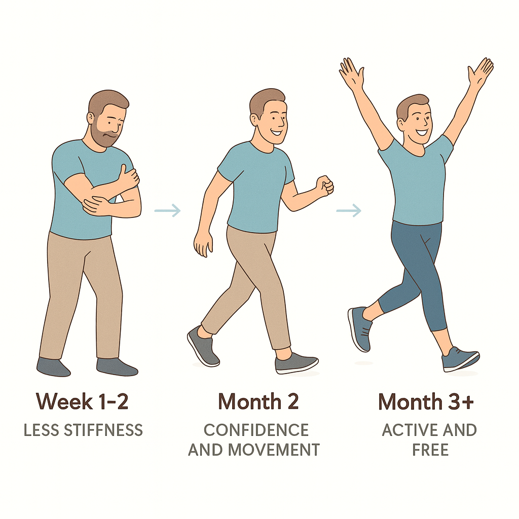 Many users report noticeable improvements in 3–7 days, especially with chronic or nagging joint pain. Deeper healing and enhanced performance usually become more apparent after 2–3 weeks of consistent use.